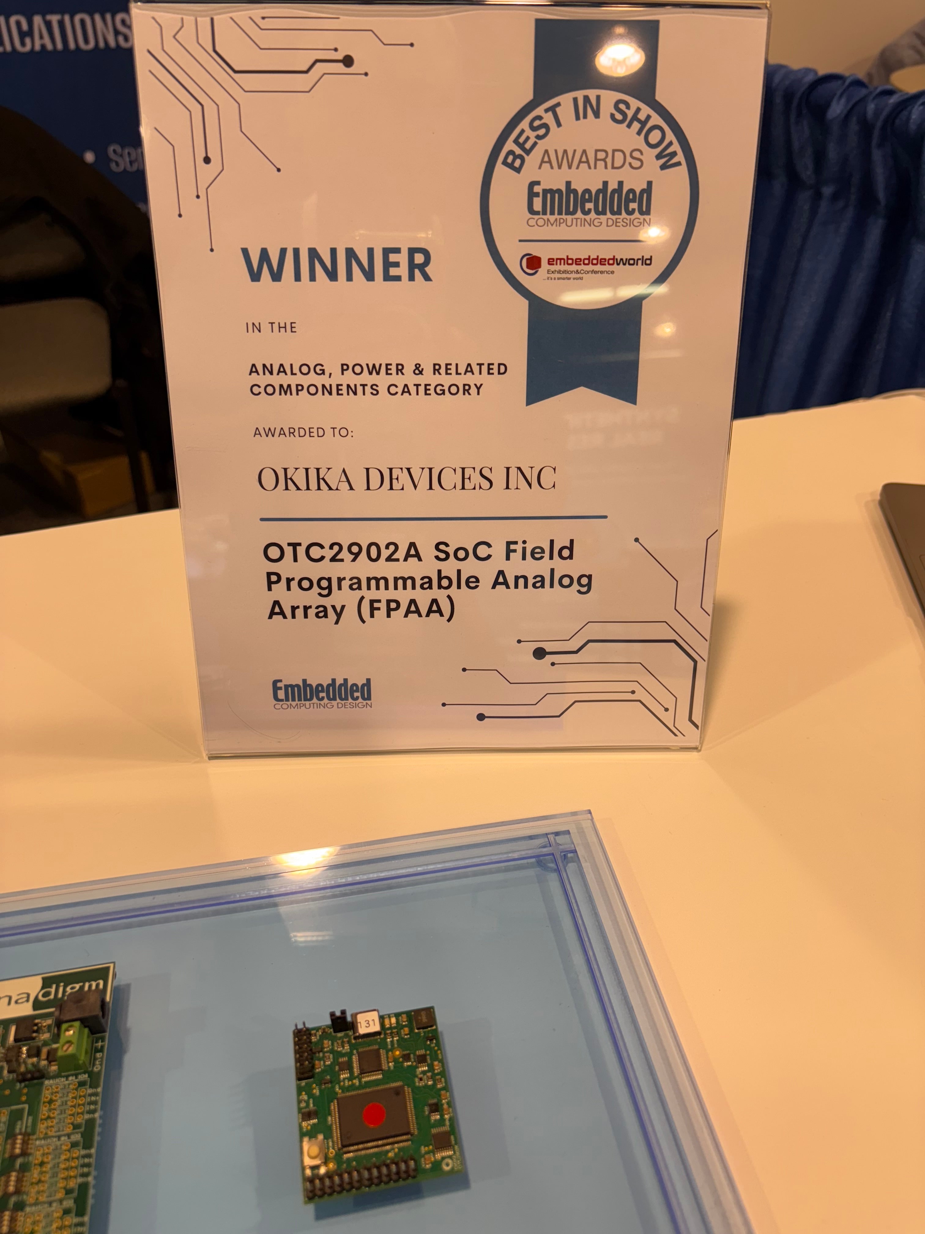We’re also proud to share that the OTC2902K SoC FPAA recently won the Best in Show award in the Analog, Power, & Related Components category at Embedded World North America.