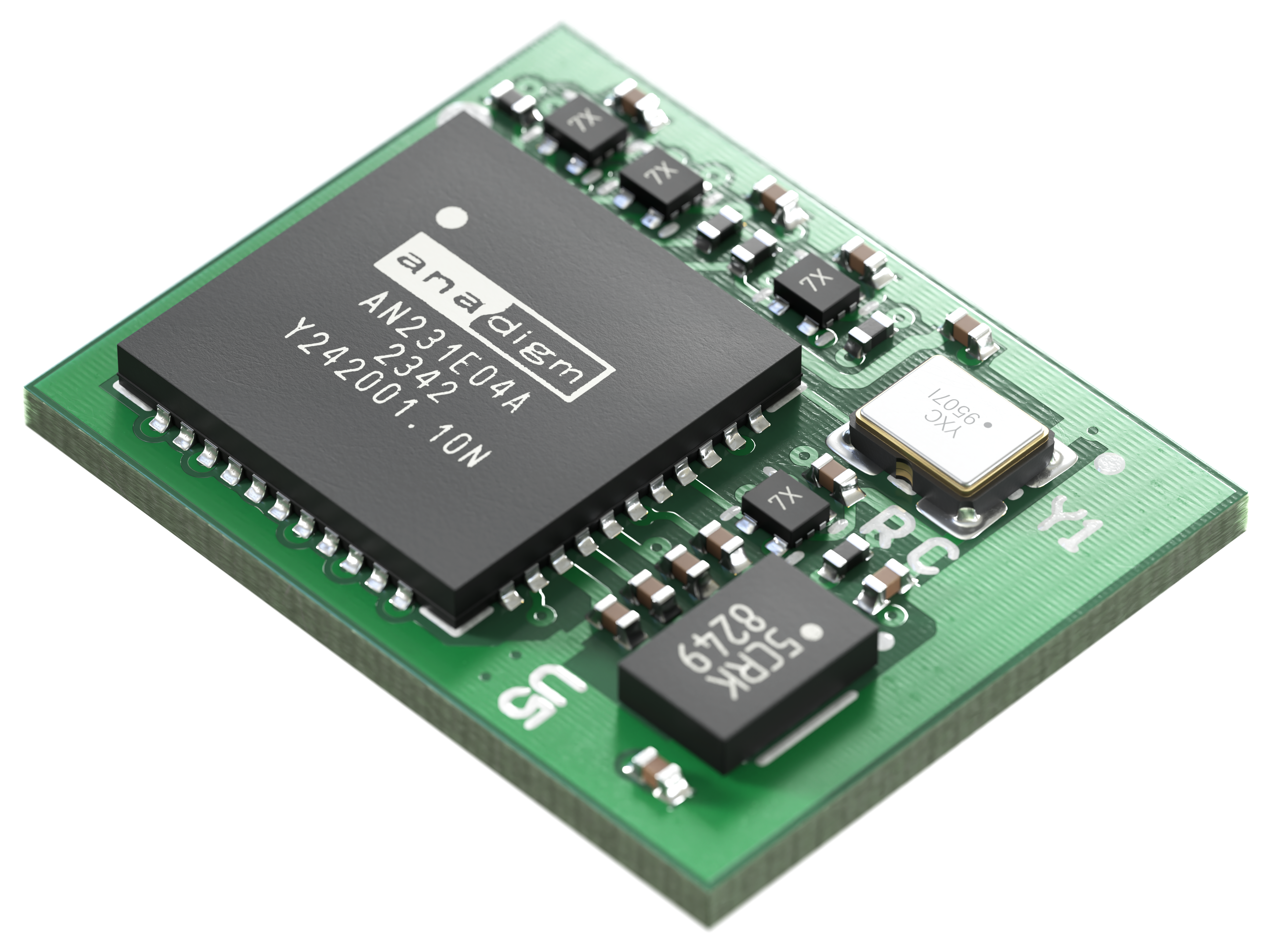 The Chameleon™ product family delivers powerful analog performance in a tiny 14 × 11 mm LGA-32 module. Each unit integrates an Okika Field Programmable Analog Array (FPAA) with on-module nonvolatile memory, precision oscillator, and reconfiguration circuitry. All in one compact package.
